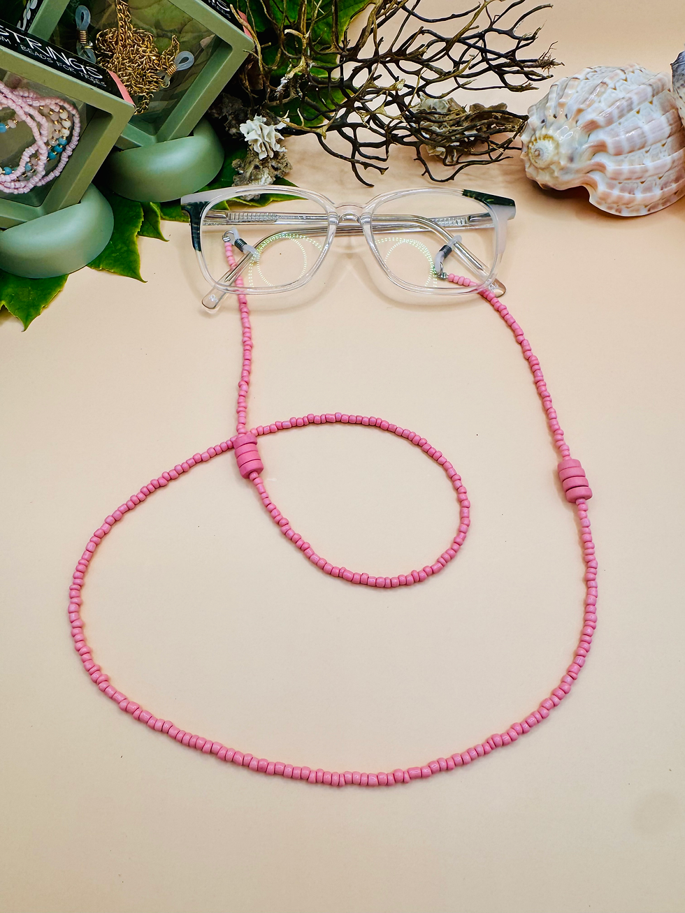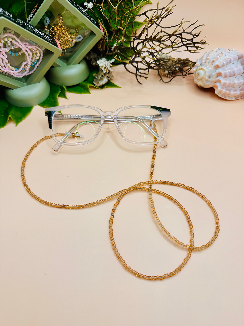 The Bare Sunny Strings Collection features handmade sunglasses chains in timeless neutral tones. Designed in South Africa, each beaded Sunny String is lightweight, durable, and easy to wear every day. A minimal sunglasses accessory that pairs effortlessly with any outfit.