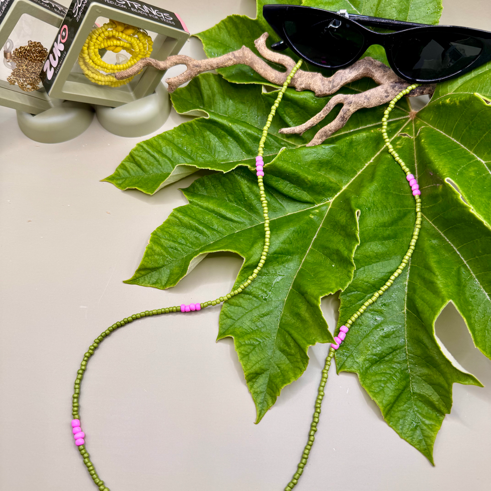 Add playful retro energy to your eyewear with the Petal Pop Sunny String, a stylish sunglasses chain handcrafted with soft pink and green beads. Designed for everyday wear, this fun yet functional accessory keeps your sunglasses secure while adding a pop of colour to your look.